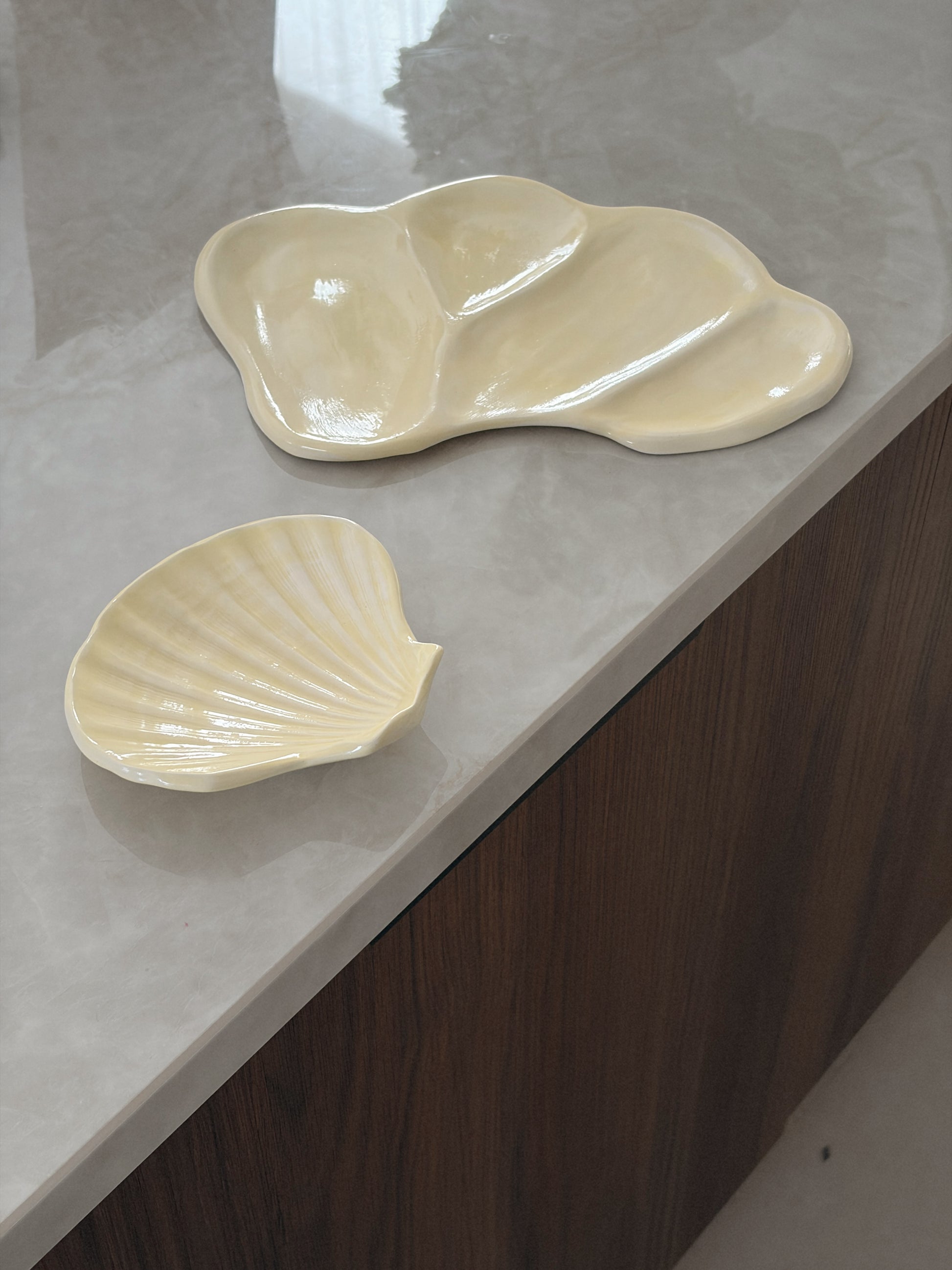 Pièces façonnées à la main dans l’atelier à Nice de notre céramiste, créées à partir d’une faïence fine blanche, puis recouverte d’un émail couleur butter yellow qui lui donne cet aspect doux et lumineux.
