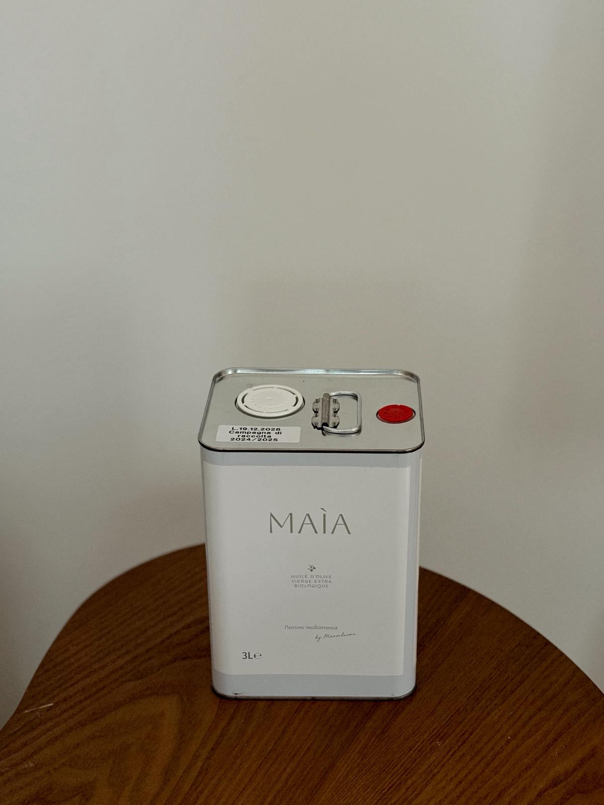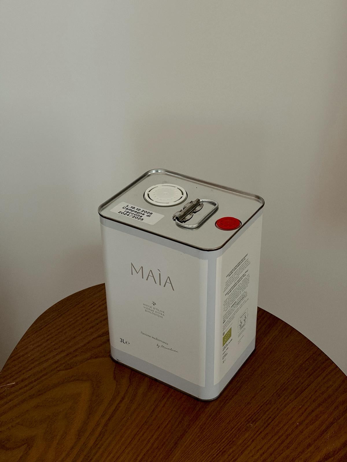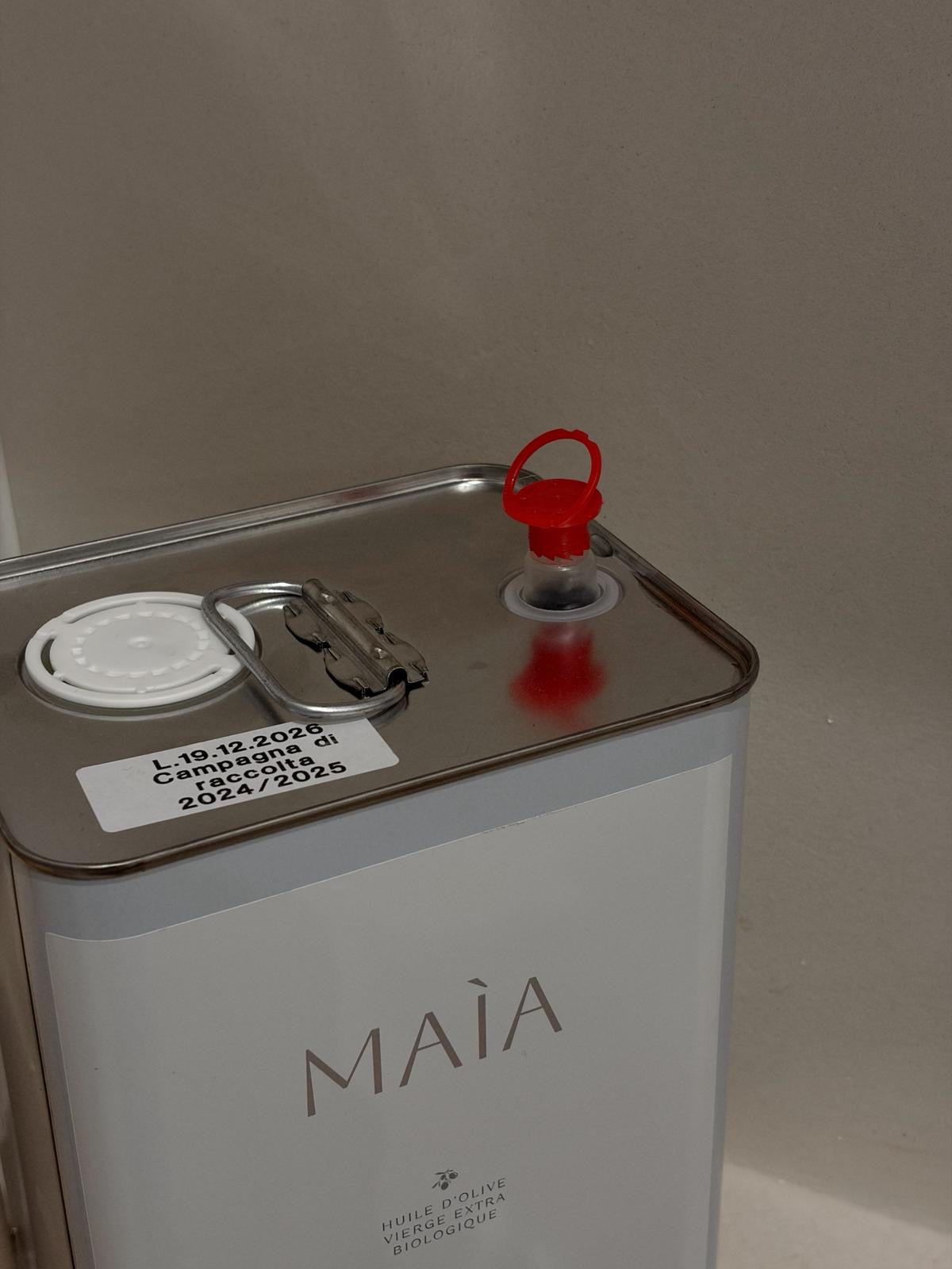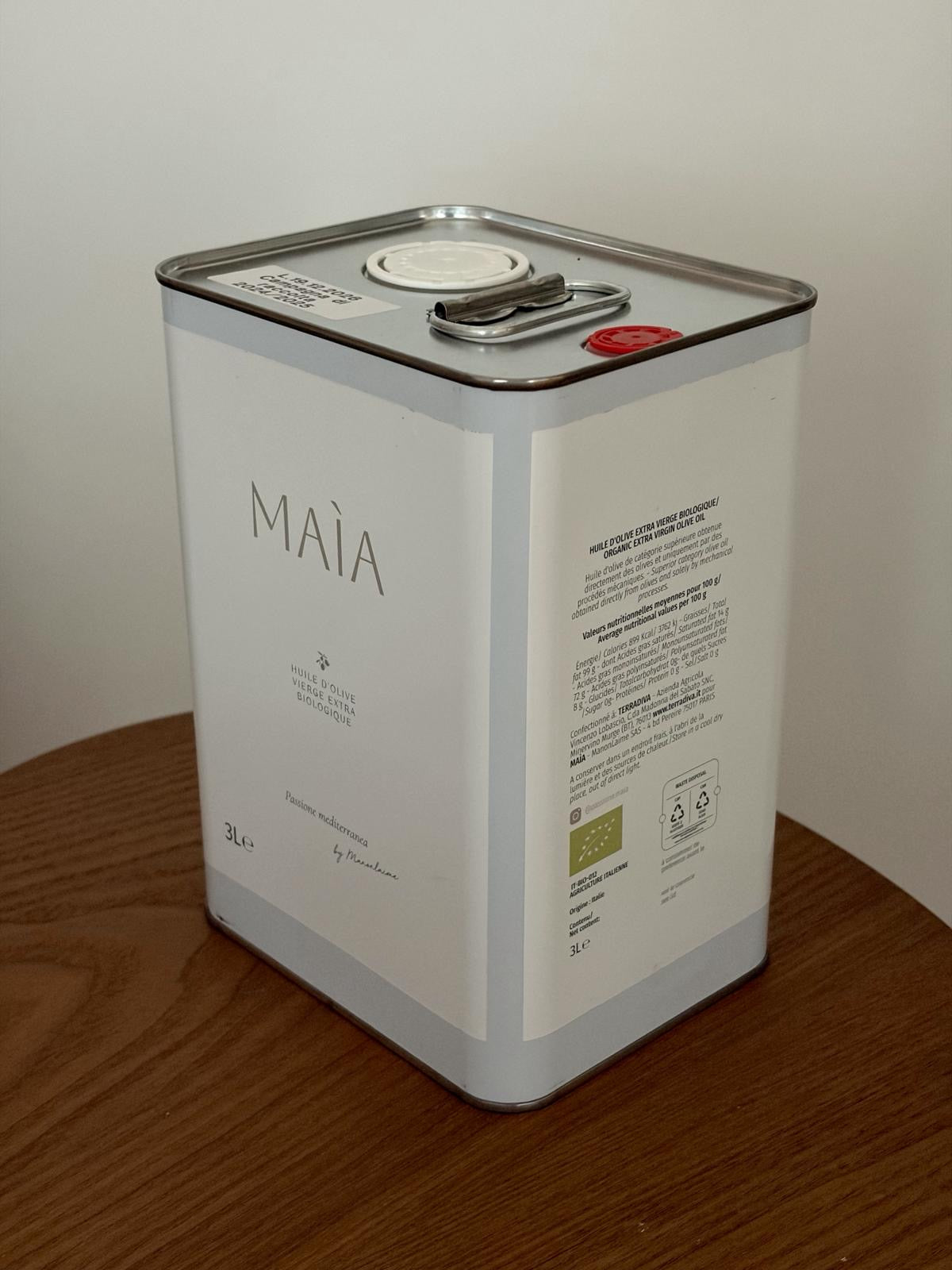 Découvrez les bidons de l’huile d’olive extra vierge biologique MAÌA, issue des Pouilles. Pressée à froid, cette huile conserve toutes ses qualités aromatiques et sa richesse naturelle. Son format de 3L est idéal pour remplir vos bouteilles MAÌA, tout en préservant l’élégance et l’authenticité de notre savoir-faire.